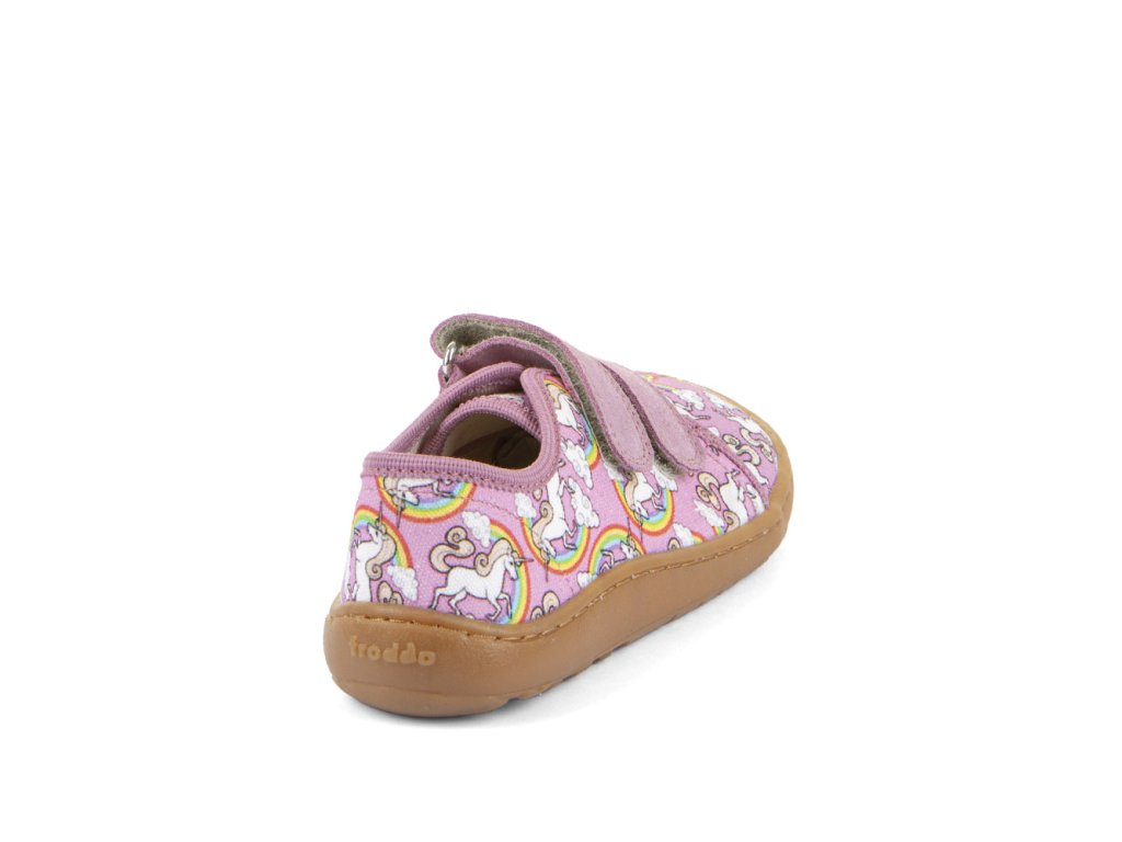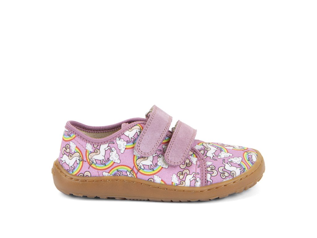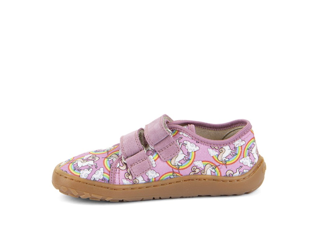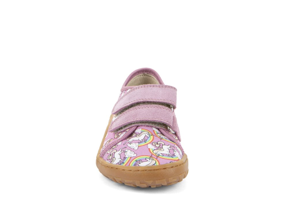 Dívčí plátěné barefoot tenisky FRODDO nízké - růžové s jednorožci.