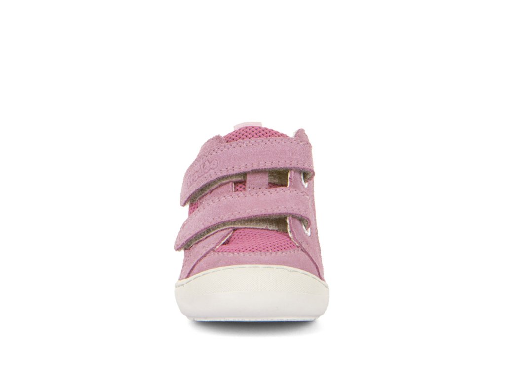 Celoroční kožené boty od chorvatské značky Froddo jsou extrémně měkké, lehké a ohebné. Boty jsou vyrobeny z kombinace kvalitní broušené kůže a prodyšného textilu, který je velmi odolný. Anatomický tvar špičky poskytne dostatek prostoru dětským prstíkům, praktické přetažení gumy přes špičku (ochrana před promáčením a odíráním), podrážka je gumová a měkká s téměř nulovým dropem (rozdíl mezi patou a špičkou). Stélka je vyjímatelná, antibakteriální a kožená bez chromu. Sedí na užší a normální nohu, užší v patě a v kotníku, vhodné jsou na normální nárt. Zapínání je na dva suché zipy pro snadné dotažení v nártu.