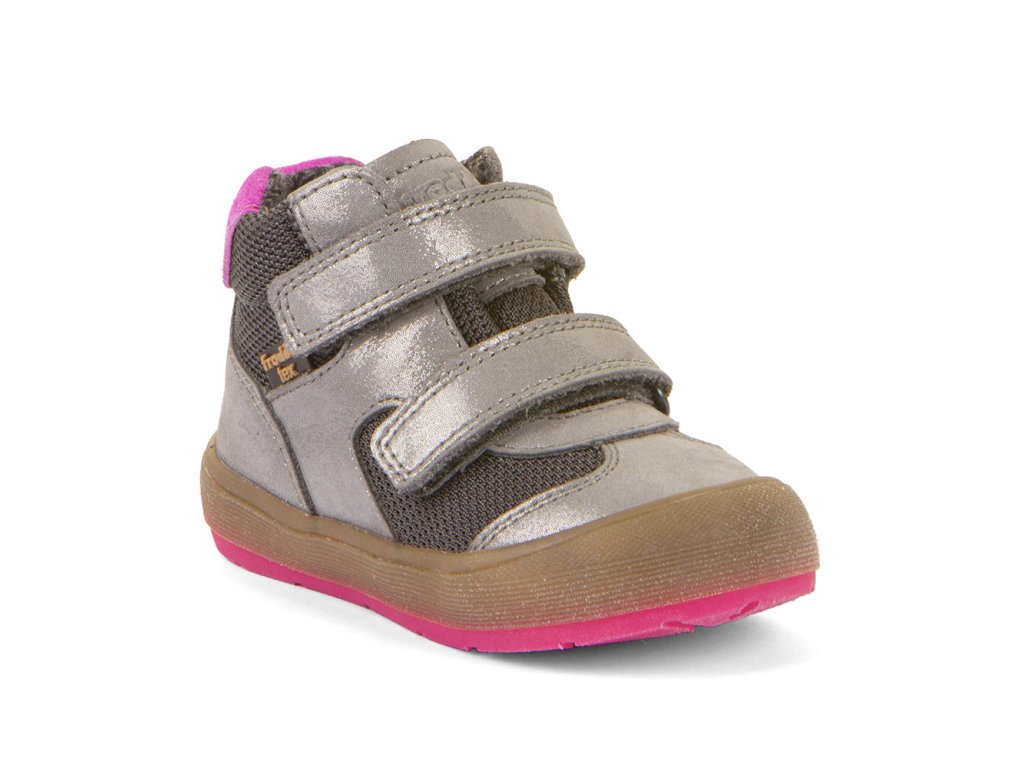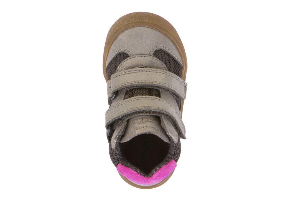 Podzimní kotníkové kožené boty od chorvatské značky Froddo jsou měkké, lehké a ohebné. Boty mají voděodolnou membránu, jsou vyrobeny z vysoce kvalitní přírodní kůže, která neobsahuje nebezpečné látky a sloučeniny, je velmi příjemná a odolná. Anatomický tvar špičky poskytne dostatek prostoru dětským prstíkům, praktické přetažení gumy přes špičku (ochrana před promáčením a odíráním), podrážka je gumová, měkká a extra flexibilní, pevnější opatek. Podšívka je fleecová pro chladnější počasí, stélka je kožená. Zapínání je na dva suché zipy pro snadné dotažení v nártu.