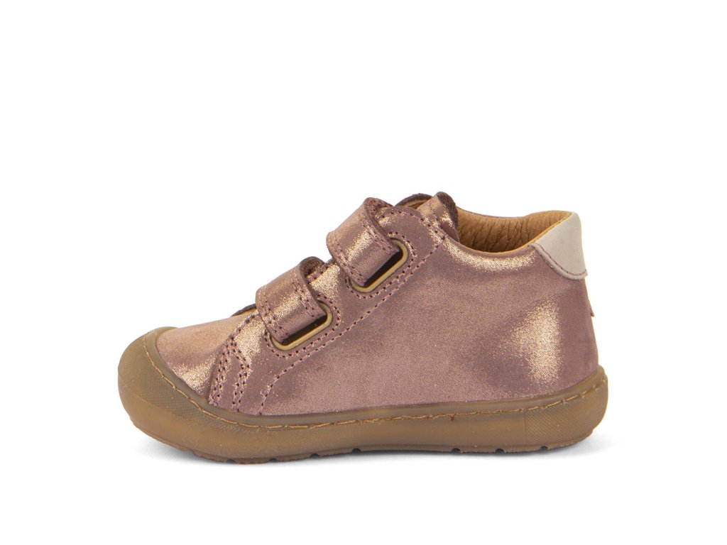 Celoroční kožené boty od chorvatské značky Froddo jsou extrémně měkké, lehké a ohebné. Boty jsou vyrobeny z vysoce kvalitní anilinové kůže, která neobsahuje nebezpečné látky a sloučeniny, je velmi příjemná a odolná. Anatomický tvar špičky poskytne dostatek prostoru dětským prstíkům, praktické přetažení gumy přes špičku (ochrana před promáčením a odíráním), podrážka je gumová a měkká s téměř nulovým dropem (rozdíl mezi patou a špičkou). Stélka je vyjímatelná, antibakteriální a kožená bez chromu. Odebráním stélky se prostor v botě zvětší o cca 5 mm a podrážka se tak stane ohebnější. Sedí na užší a střední nohu, užší v patě a v kotníku, vhodné jsou na normální nárt. Zapínání je na dva suché zipy pro snadné dotažení v nártu.