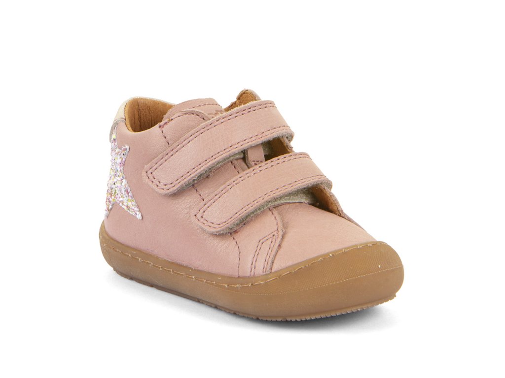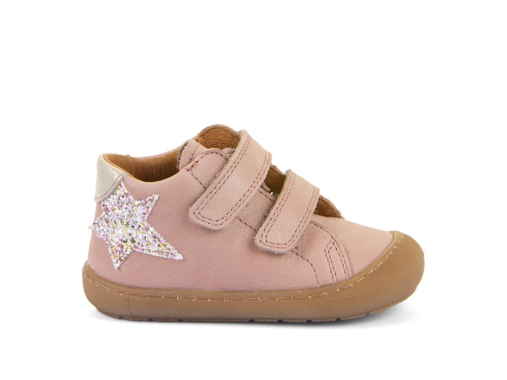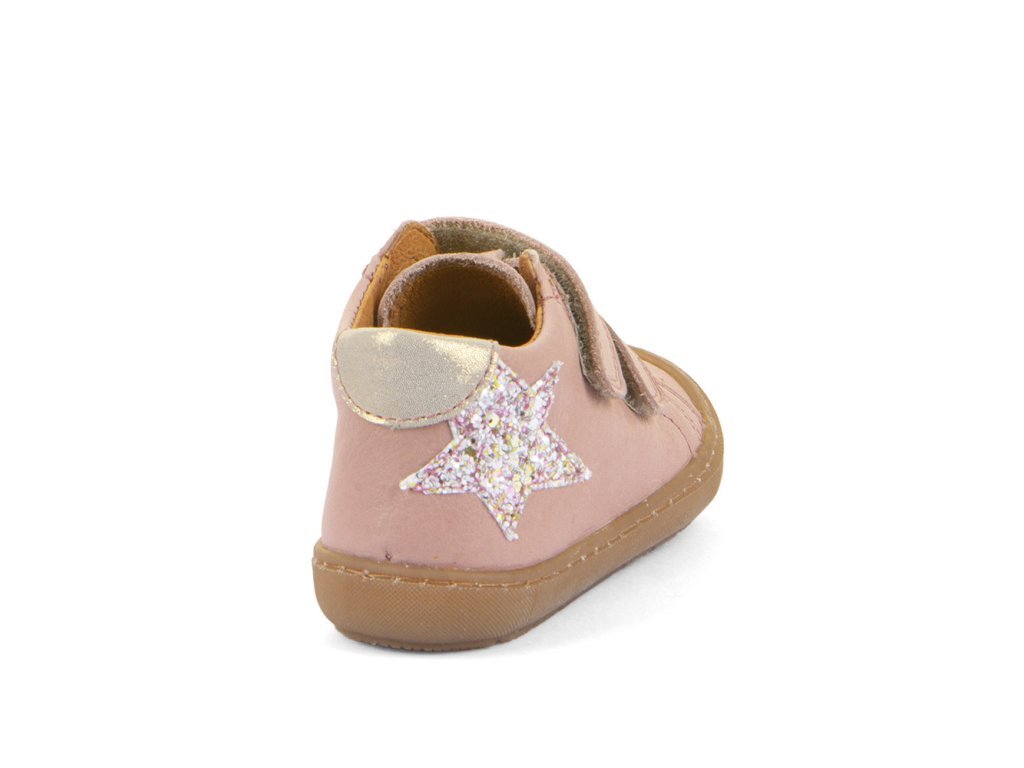 Dívčí celoroční kožená obuv FRODDO OLLIE v růžové barvě s třpytivou hvězdou na patě.