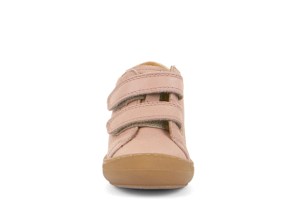 Celoroční kožené boty od chorvatské značky Froddo jsou extrémně měkké, lehké a ohebné. Boty jsou vyrobeny z vysoce kvalitní anilinové kůže, která neobsahuje nebezpečné látky a sloučeniny, je velmi příjemná a odolná. Anatomický tvar špičky poskytne dostatek prostoru dětským prstíkům, praktické přetažení gumy přes špičku (ochrana před promáčením a odíráním), podrážka je gumová a měkká s téměř nulovým dropem (rozdíl mezi patou a špičkou). Stélka je vyjímatelná, antibakteriální a kožená bez chromu. Odebráním stélky se prostor v botě zvětší o cca 5 mm a podrážka se tak stane ohebnější. Sedí na užší a střední nohu, užší v patě a v kotníku, vhodné jsou na normální nárt. Zapínání je na dva suché zipy pro snadné dotažení v nártu.