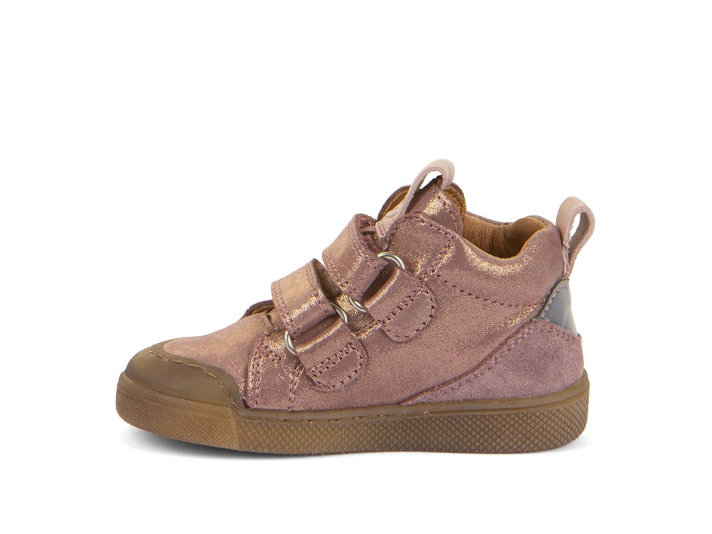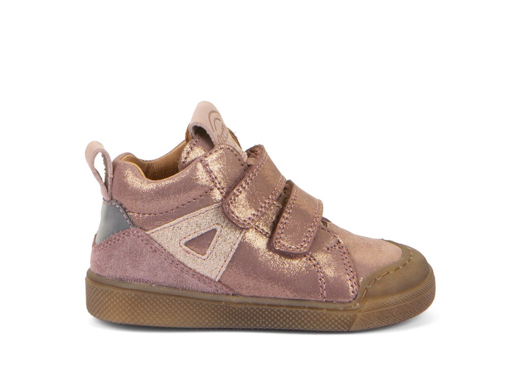 Dívčí celoroční kotníková obuv FRODDO ROSARIO HIGH-TOP v růžové třpytivé barvě.