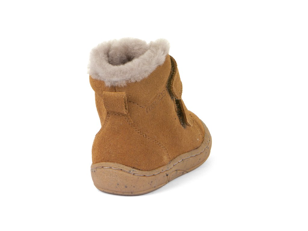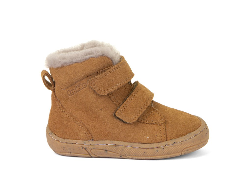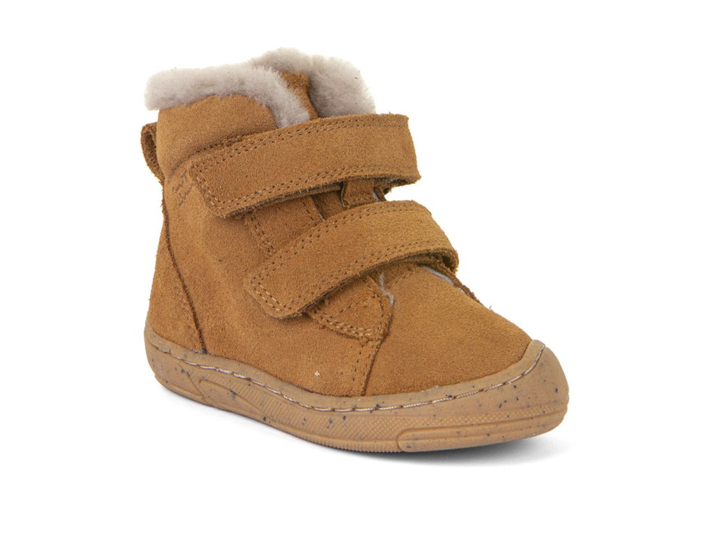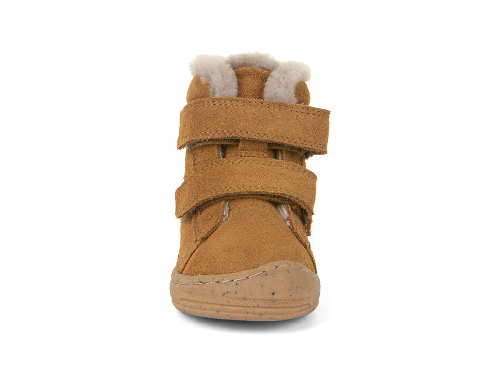 Unisex zimní kotníková obuv FRODDO MINNI SUEDE VELCRO v koňakové barvě.