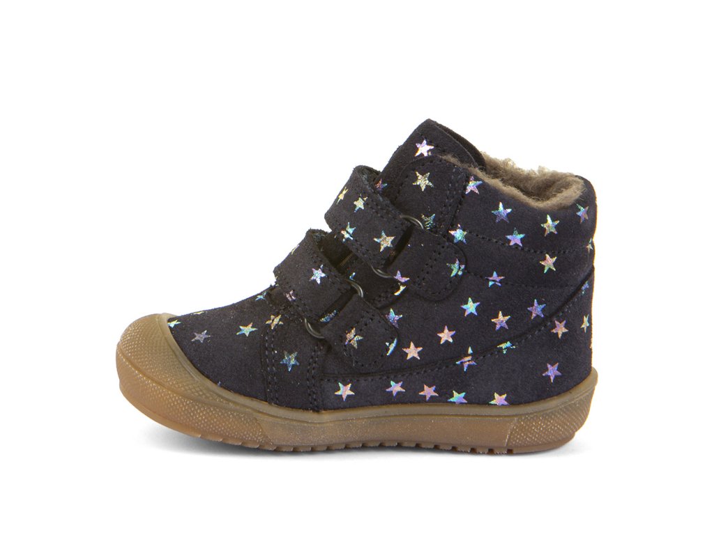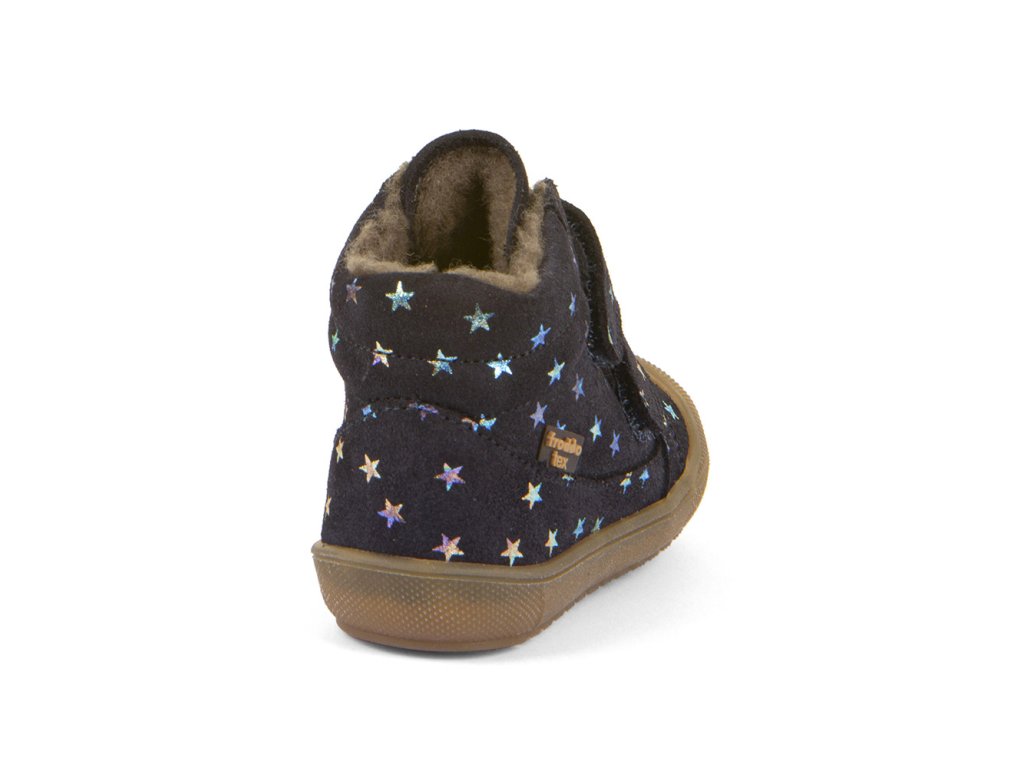 Zimní kotníkové kožené boty zateplené ovčí kožešinkou od chorvatské značky Froddo jsou extrémně měkké, lehké a ohebné. Boty mají voděodolnou membránu, jsou vyrobeny z vysoce kvalitní přírodní kůže, která neobsahuje nebezpečné látky a sloučeniny, je velmi příjemná a odolná. Anatomický tvar špičky poskytne dostatek prostoru dětským prstíkům, praktické přetažení gumy přes špičku (ochrana před promáčením a odíráním), podrážka je gumová, měkká a extra flexibilní, pevnější opatek. Podšívka i stélka je z ovčí kožešiny. Sedí na užší a střední nohu, užší v patě a v kotníku, vhodné jsou na normální nárt. Zapínání je na dva suché zipy pro snadné dotažení v nártu.