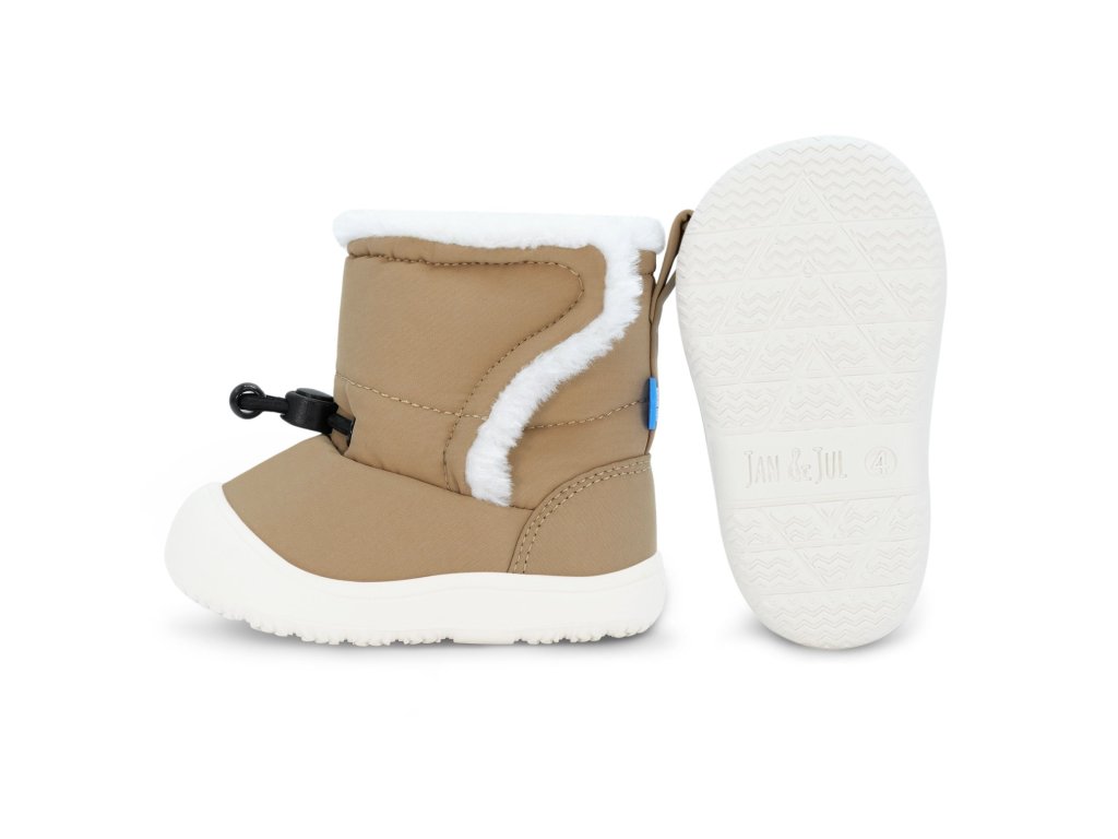 Dětské sněhule kanadské značky Jan and Jul jsou ideální pro miminka a začínající chodce, jsou lehké a skvěle voděodolné do každé zimy. Mají flexibilní gumovou podrážku, která je lehká a protiskluzová s praktickým okopem na špičce. Podrážka je skvěle přilnavá na zasněžených površích. Sněhulky se snadno obouvají díky suchým zipům po obou stranách, navíc mají nastavitelnou elastickou šňůrku kolem kotníku, která umožňuje ještě větší dotažení. Voděodolné s technologií Bionic-Finish® Eco, malé nožky zůstávají v teple díky voděodolné a větruodolné tkanině, vnitřek je zateplený syntetickým kožíškem a střední izolační vrstvou.