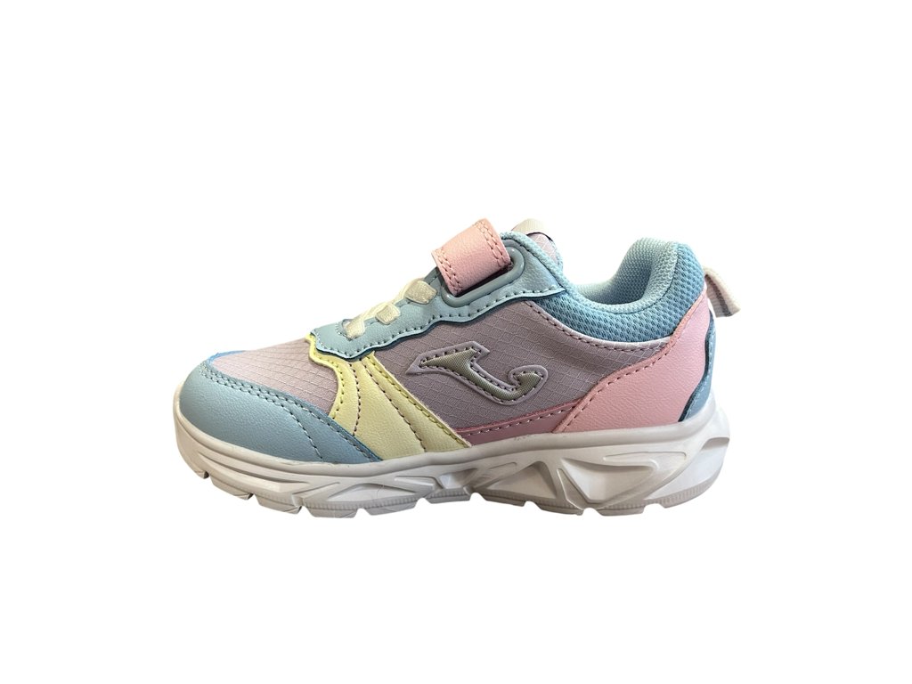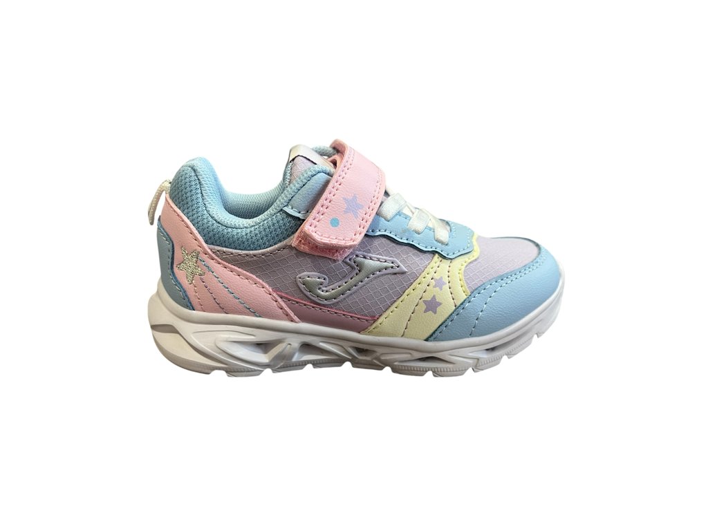 Extra lehká sportovní obuv španělské značky Joma. Lehký a prodyšný materiál, tenisky disponují non-marking podrážkou, která nezanechává šmouhy, ideální na sportovní venkovní aktivity. Jsou vhodné i do terénu, trailová podrážka s hrubším vzorkem tlumí nárazy. Boty mají příjemné polstrování v oblasti paty pro větší komfort při chůzi a sportování. Tenisky mají pevnou patu a velice příjemnou textilní podšívku. Svršek je z odolné textilie v kombinaci se syntetikou. Podrážka má v přední části gumový okop pro lepší akceleraci a na patě gumový díl, který tlumí nárazy na patu. Boty jsou lehké a velmi dobře profilované. Vyjímatelná textilní stélka bez tvarování a bez podpory klenby. Praktické zapínání na jeden suchý zip a gumové tkaničky, které se přizpůsobí výšce nártu. Boty jsou skvělé pro mnoho dětských aktivit.