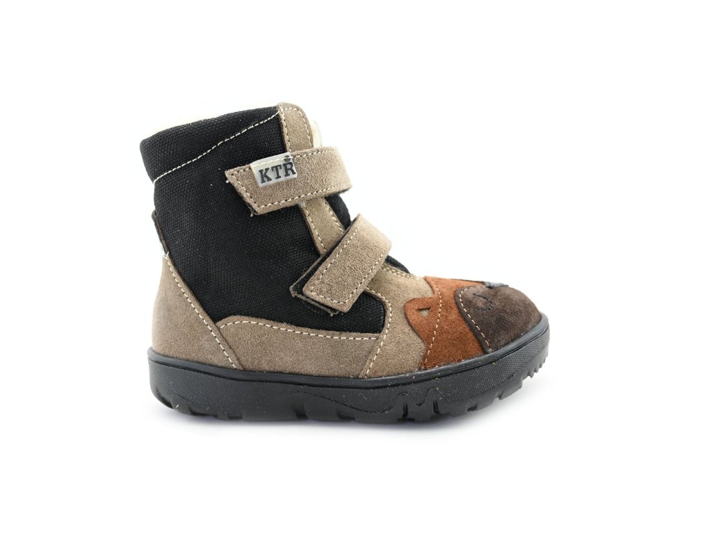 Chlapecká zimní obuv české značky KTR s nepromokavou membránou v hnědé barvě na špičce se zvířátkem - 315/SOVA/KTR/BAE.