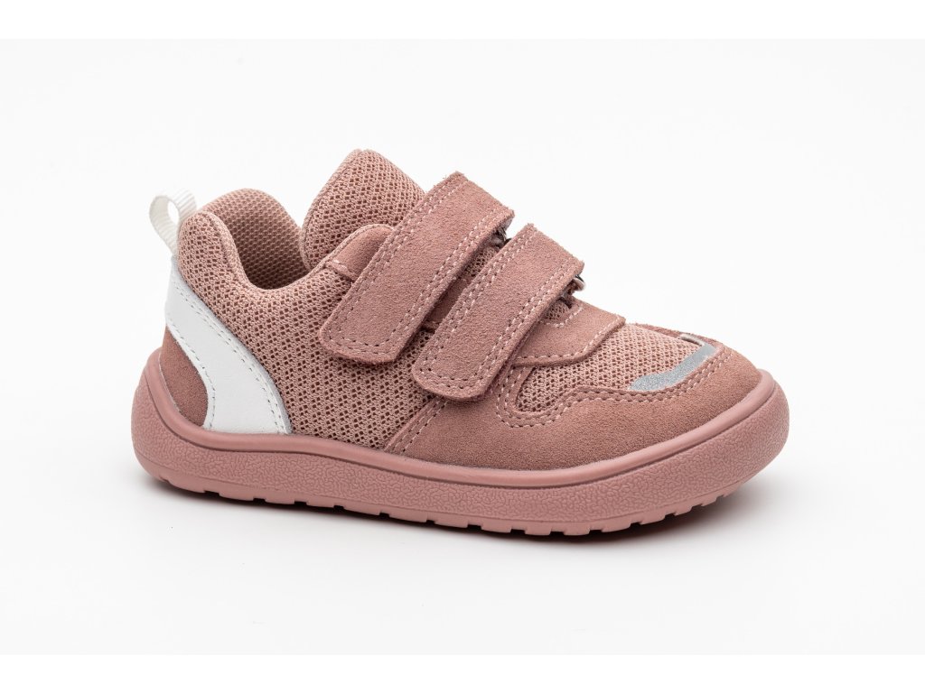 BAREFOOT boty/tenisky značky PROTETIKA jsou textilní botičky na jaro a léto. Jde o nový model který má novou podrážku a lepší tvar oproti starším modelům. Obuv má flexibilní podešev ve směru chůze i příčně a zpevněnou patu, špička je anatomicky tvarovaná a zaručuje dostatek místa pro prsty, vhodná i pro dominantní palec. Oproti starším modelům jsou více flexibilnější, mírně širší v přední části a užší v patě. Zapínání na dva suché zipy, které zaručují dobrou regulaci výšky nártu a samozřejmostí je zvýšená okopová špička i vyvýšení v patě. Svršek je v kombinaci broušené kůže a textilní síťoviny, vnitřní část je textilní s vyjímatelnou koženou stélkou (netvarovaná). Podrážka je gumová s jemným vzorkem.