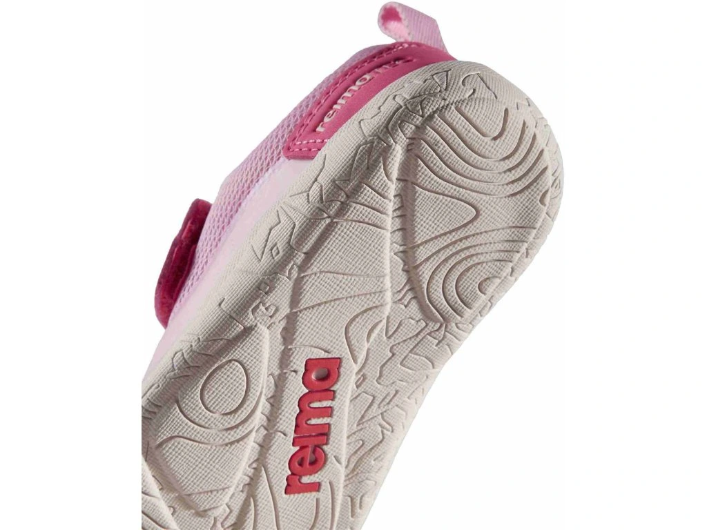 BAREFOOT dětské tenisky finské značky REIMA s voděodolnou membránou Reimatec jsou textilní botičky na jaro a léto, které jsou velmi lehké a měkké. Obuv má flexibilní podešev všemi směry, špička je dobře anatomicky tvarovaná a zaručuje dostatek místa pro prsty, mají praktický pogumovaný okop. Svršek je vyrobený z textilu (obsahuje alespoň 50 % recyklovaného materiálu) a mají podšívku ze síťoviny. Zapínání je na jeden elastický suchý zip, díky kterému se dobře regulují v oblasti nártu, přes nárt je ještě i elastická gumička. Stélka je vyjímatelná a netvarovaná, opatek je měkký. Podrážka je gumová (30 % recyklované gumy v podrážce) s jemným vzorkem.