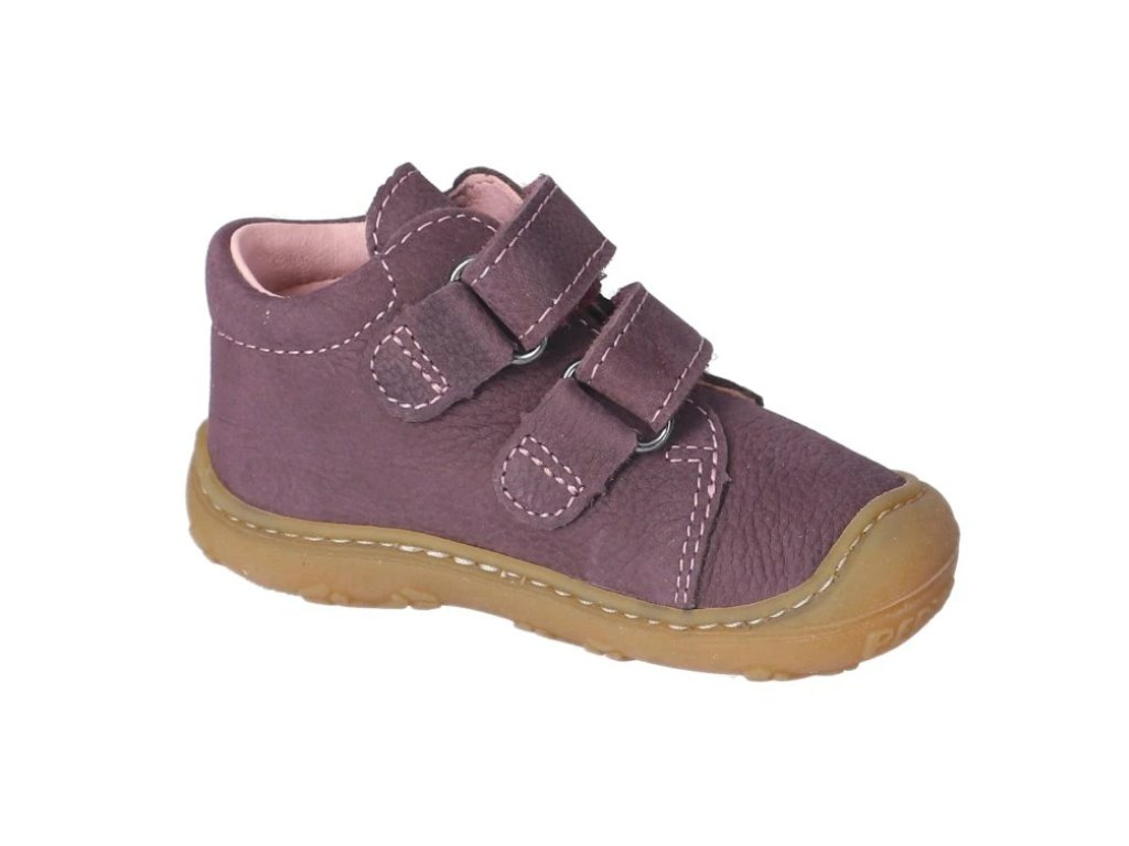 Dětská barefoot celoroční kotníková obuv německé značky Ricosta jsou krásně měkké a flexibilní botičky vhodné i pro začínající chodce. Svrchní materiál tvoří broušená kůže, podšívka je také kožená pro vyšší odolnost a prodyšnost. Boty jsou pouze šité, bez použití lepidla, tzn. ta nejšetrnější forma výroby pro nejmenší děti. Podešev je vyrobena z přírodního kaučuku, který je pevný ale pružný přírodní materiál a je protiskluzový. Praktický okop chrání botičku před odíráním, mají vyjímatelnou koženou stélku. Zapínání je na dva suché boty, lze je široce otevřít.