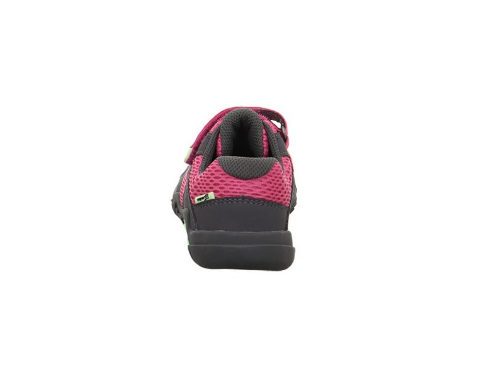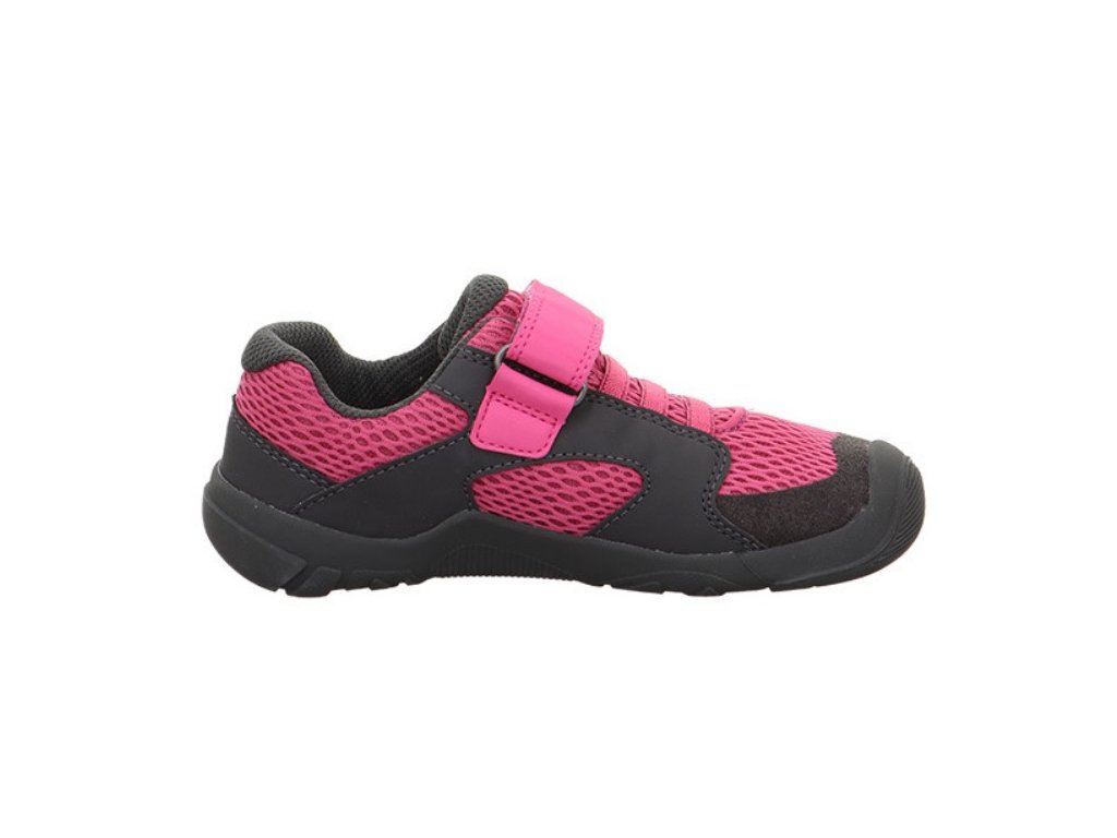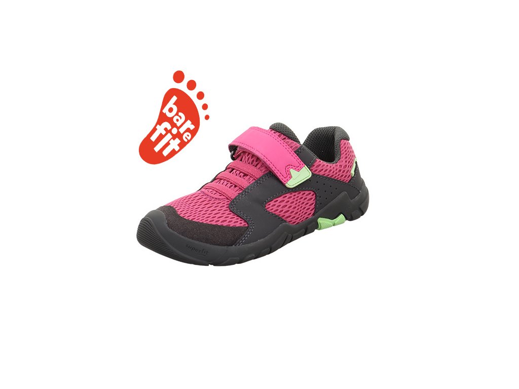 Celoroční dětská obuv rakouské značky Superfit je vyrobena z nové kolekce BAREFIT - nový tvar podešve s prostornou špičkou, která zaručuje dostatečný prostor pro prsty. Tento model je možné zařadit jako barefootový kompromis, jsou extrémně lehké. Botičky zaujmou svojí flexibilitou a lehkostí. Podešev je měkká a ohebná, což umožnuje přirozený pohyb, zpočátku je tužší, ale je bez jakéhokoliv vyvýšení nebo podpory klenby, mají nulový drop. Boty jsou textilní a prodyšné, vnitřní část je také textilní, špička má mírný pogumovaný okop a lehce zpevněný opatek. Kožená stélka je vyjímatelná a rovná. Anatomický tvar podešve je vhodný i pro dominantní palce. Zapínání je na jeden suchý zip, v nártu se přizpůsobí díky gumičkám.