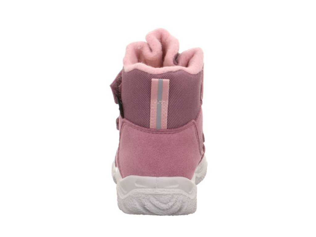 Zimní dětská obuv rakouské značky Superfit s nepromokavou membránou GORE-TEX® . Boty jsou středně vysoké a vyrobené na středně široké a úzké chodidlo. Díky dvou suchým zipům umožňují široké otevření pro snadné obouvání, hezky se přizpůsobí nártu a lze je snadno utáhnout tak, jak je potřeba. Botičky jsou extrémně lehké, mají zvýšenou velmi lehkou podešev s hrubším vzorem, která izoluje teplo a je dobře stabilní na sněhu a ledu. Svršek je ze syntetiky a textilu, vnitřní část je zateplena textilní PU kožešinou a spolu s prodyšnou a nepromokavou membránou zaručují komfort teplých a suchých nožek. Boty mají polstrovaný pevnější opatek - pro lepší fixaci nohy, špička má pogumovaný okop. Vyjímatelná stélka je zateplená. Sněhule jsou extrémně odolné vůči nepříznivému počasí, jako je déšť, sníh a mráz. U značky Superfit je nadstandardně provedené spojení jazyku s pevnou části obuvi vložením GORE-TEX® látky, která zabraňuje vniknutí vody, sněhu a nečistot do obuvi. Sněhule jsou vhodné pro běžné zimní radovánky a aktivní zimní sporty.