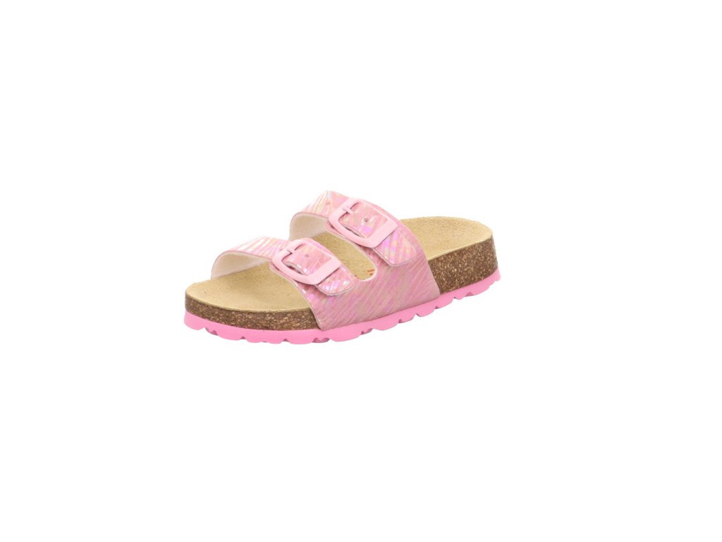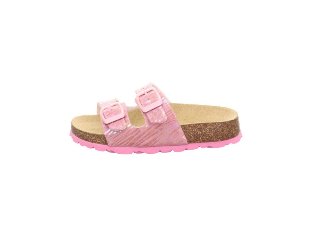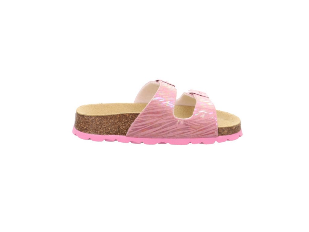 Dětské korkové zdravotní pantofle/sandále rakouské značky Superfit jsou vhodné nejen na doma a do školy, ale můžete je nosit i venku jako letní sandály. Svršek obuvi je ze syntetiky a vnitřní část z přírodní kůže, podrážka je vyrobena z korku a syntetiky, je protiskluzová a nebarvící. Stélka je ortopedicky tvarovaná, kožená s podporou podélné klenby a má patní lůžko. Zapínání je na dva nastavitelné pásky a sedí na normálně široké nožky, jsou vhodné také pro vyšší nárt díky nastavitelným páskům.