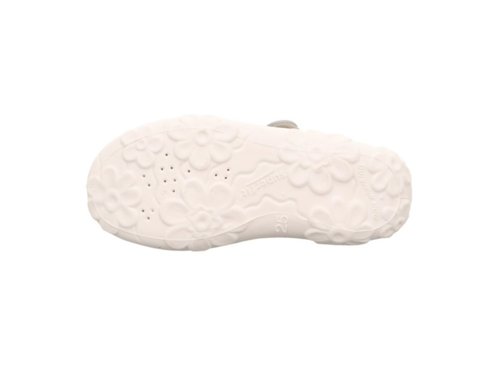 Dětské papučky rakouské značky Superfit se zapínáním na suchý zip, díky kterému se dají krásně regulovat v oblasti nártu. V okolí kotníku je mírné vykrojení a tím bota lépe padne. Papučky jsou pohodlné, jelikož krásně kopírují tvar nohy i kotníku, jsou velmi ohebné a přizpůsobivé. Podrážka je měkká, v přední části krásně ohebná, s větracími otvory pro lepší prodyšnost. V přední i zadní části je podrážka vyvýšená, chrání tak proti okopu. Vnitřní část je z textilu, mírné zpevnění v místě, kde je podrážka vyvýšená. Podešev je vstřikovaná - velmi lehká, ohebná, ventilační otvory v přední části pro zmírnění pocení nohou, nedělá šmouhy.