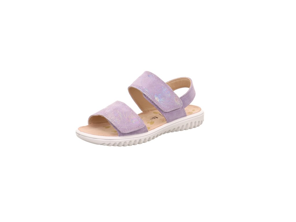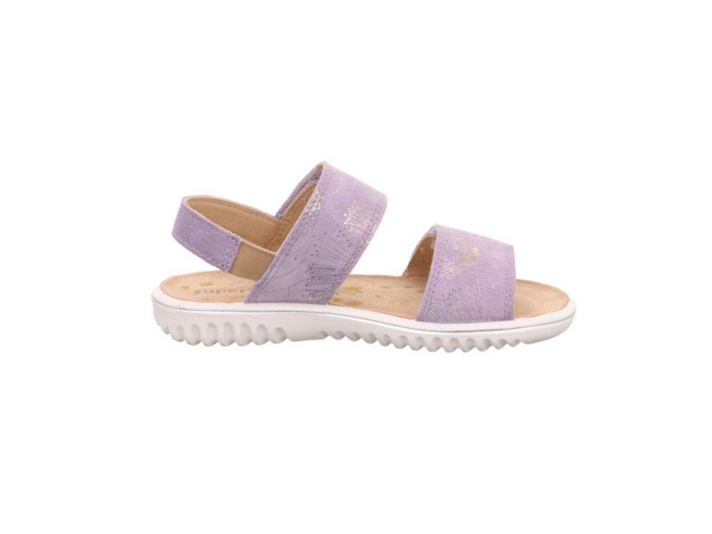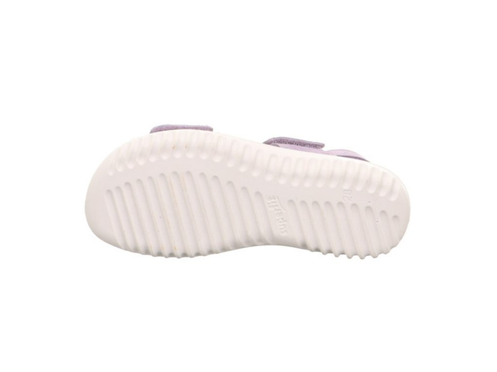 Dětské letní sandálky rakouské značky Superfit jsou vyrobeny z pravé kůže, sandálky jsou měkké, vysoce odolné a jsou vhodné pro větší holčičky. Sandálky mají vlepenou koženou stélku, která je anatomicky tvarovaná a poskytuje dítěti maximální pohodlí, nemají pevný opatek. Podešev je velmi lehká, ohebná a pružná. Zapínání je na suché zipy a je možnost regulace nártu, pata je na gumičku.