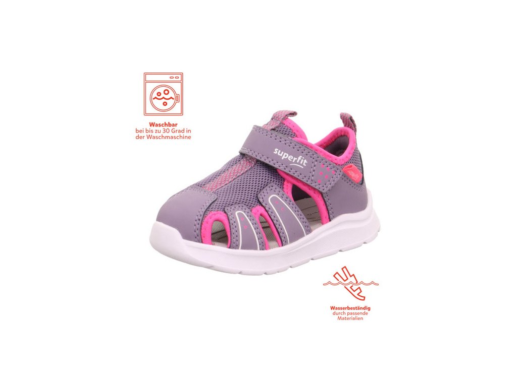 Dětské letní sandálky rakouské značky Superfit jsou absolutním hitem léta - speciálně uzpůsobené pro dětskou aktivitu na suchu i ve vodě a dokonce se mohou prát v pračce na 30 stupnů. Sandálky jsou odolné a vyrobeny ze syntetických materiálů, textilu a chladného neoprenu, a proto jsou absolutně voděodolné. Sandály jsou měkké, extrémně lehké, můžou se nosit i ve vodě, rychle schnou a dají se snadno čistit. Podešev je vyrobena z EVA materiálu, díky kterému je velmi lehká, ohebná a pružná, přesto nabízí spolehlivý a bezpečny pohyb na všech površích. Děti mají v sandálkách kryté prsty i patu, a tak chrání nožku. Zapínání je na jeden suchý zip, ale místo pro nárt je prostorné.