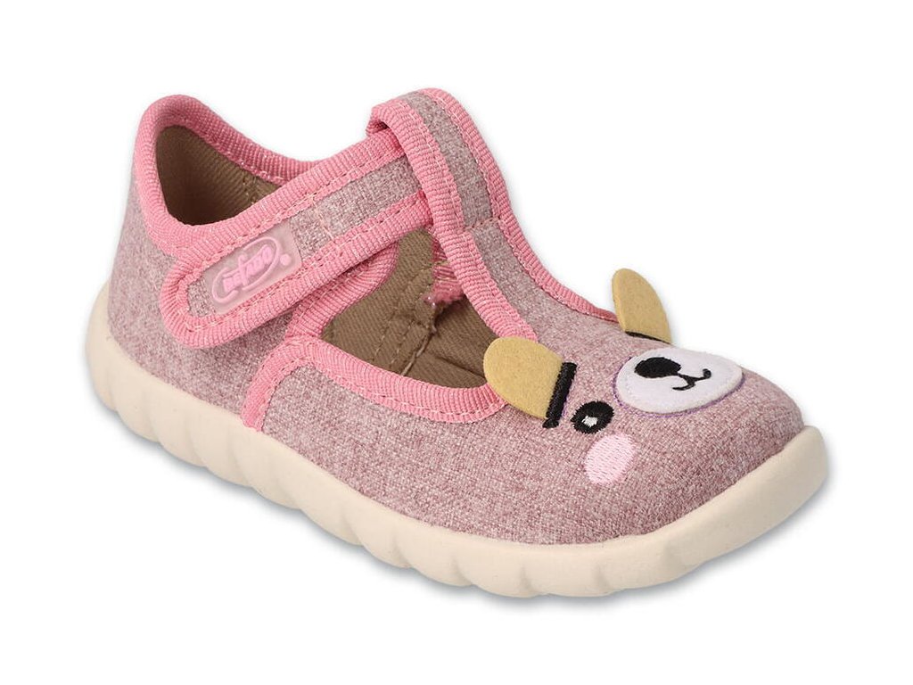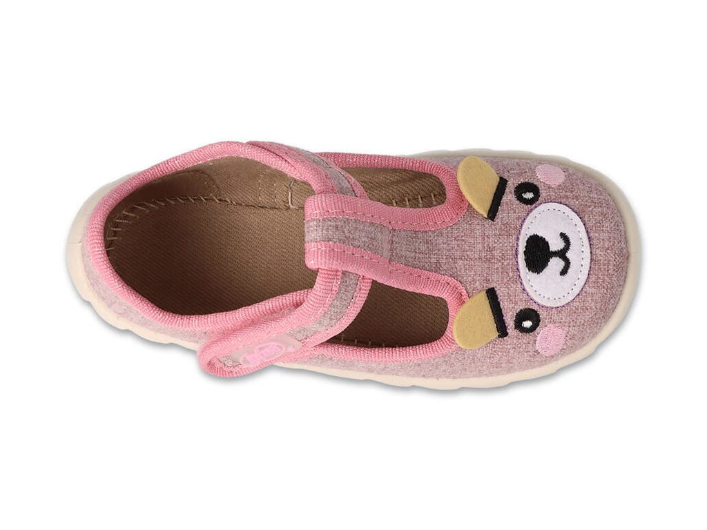 Dětské papučky BEFADO FLEXI růžové s medvídkem.