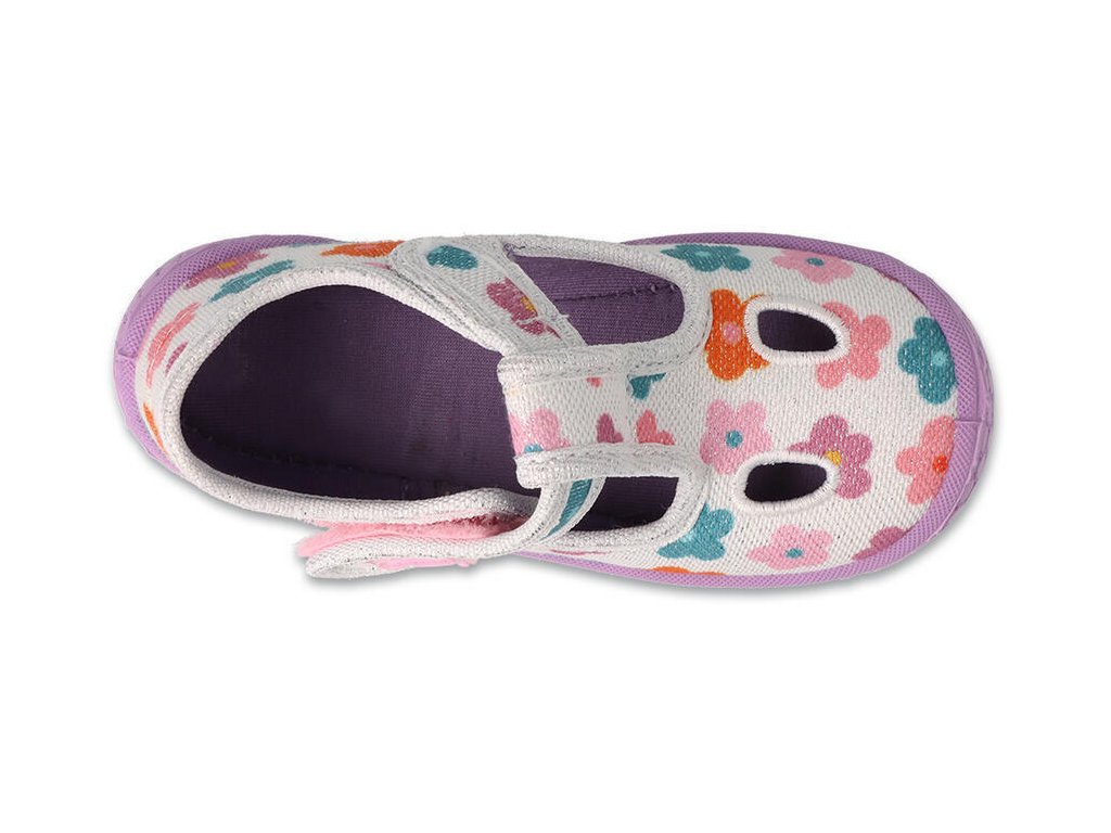 Krásné papučky se zapínáním na suchý zip, která umožní pohodlné a rychlé obouvání doma i ve školce. Lehká, pružná a odvětrávaná podrážka. Boty mají měkkou stélku Soft-B System, která výrazně zlepšuje pohodlí obuvi, dále boky stabilizující chodidlo, ohýbání podešve v souladu s doporučením ortopedů, vyztužený zadní pásek, širší špičky a prodyšnou podešev. Papučky jsou lehké, vysoce pružná podešev vyrobená z PU, zajišťuje správné ohnutí dětské nohy. Doporučují se jako obuv pro doma, ale během suchých, teplých dnů je lze použít i venku. Vyrobeno z bavlněných tkanin.