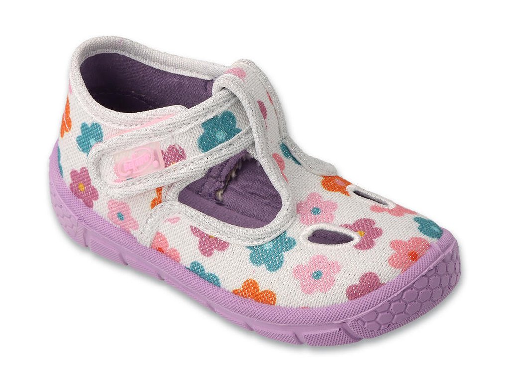 Dětské papučky BEFADO třpytivá s barevnými kytičky.