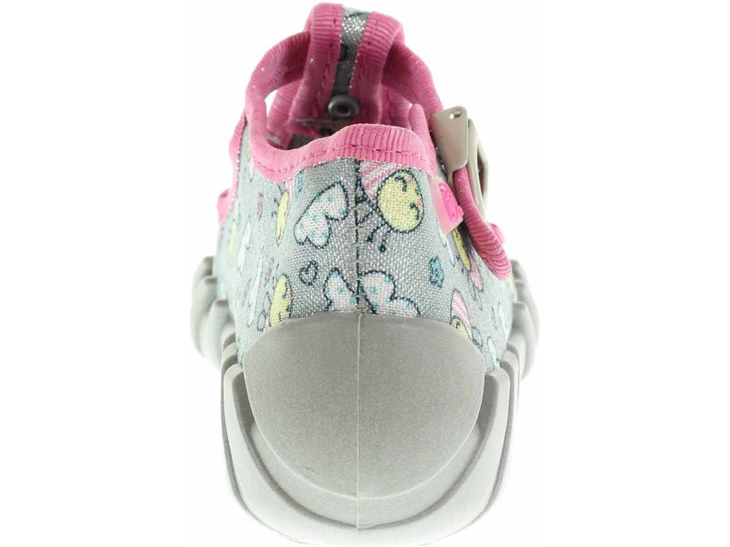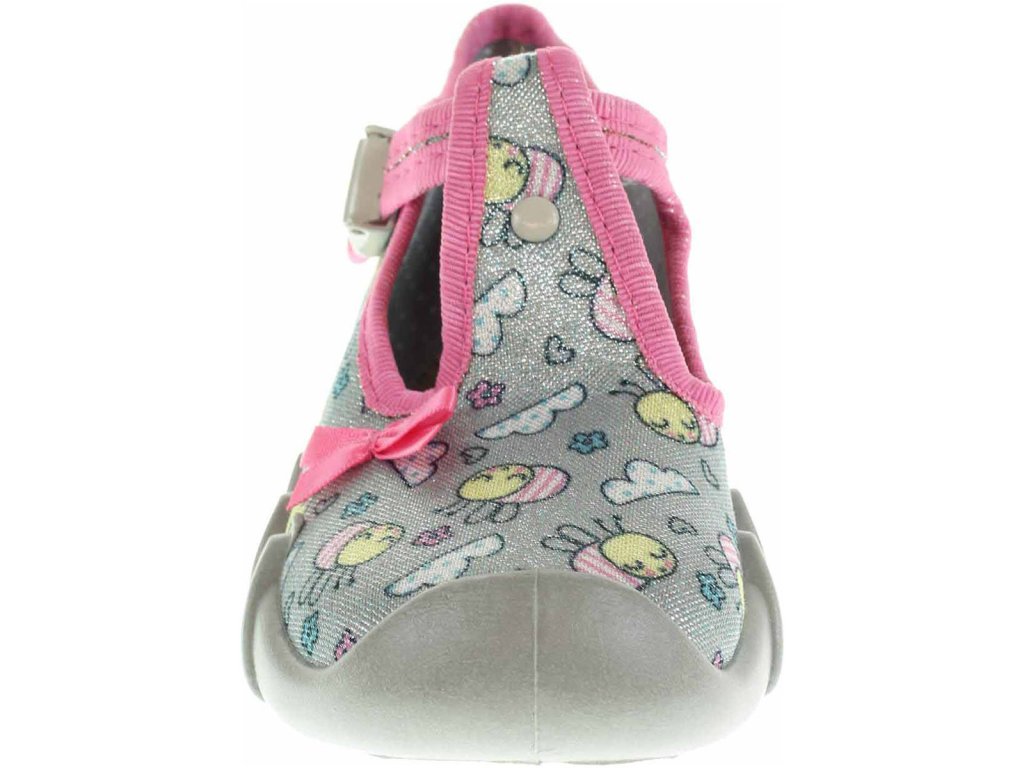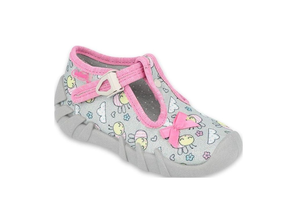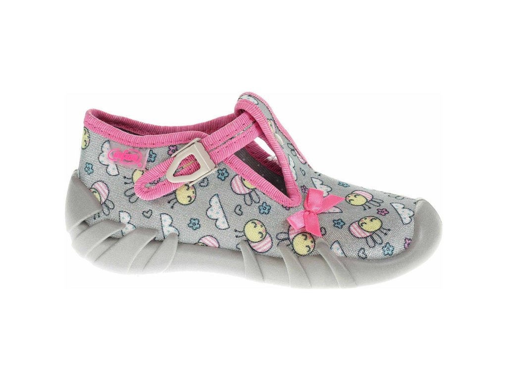 Krásné papučky se zapínáním na přezku, která umožní pohodlné a rychlé obouvání doma i ve školce. Lehká, pružná a odvětrávaná podrážka. Kožená stélka, zvyšuje pohodlí při nošení obuvi, dále boky stabilizující chodidlo, ohýbání podešve v souladu s doporučením ortopedů, vyztužený zadní pásek, širší špičky a prodyšnou podešev. Doporučují se jako obuv pro doma, ale během suchých, teplých dnů je lze použít i venku. Vyrobeno z bavlněných tkanin.