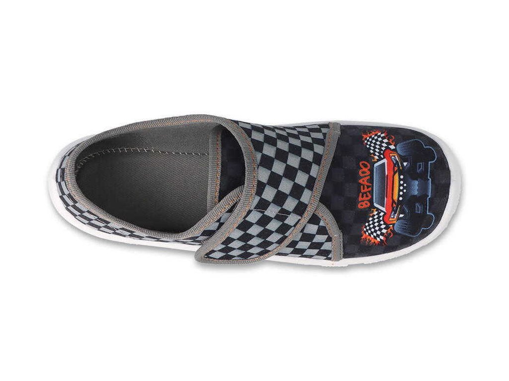 Chlapecké papučky na suchý zip, odvětraná podrážka zajišťuje prodyšnost obuvi a odvod nadměrné vlhkosti, lehká, pružná a protiskluzová podrážka pro pohodlí a bezpečnost chůze, speciálně vyztužená pata a zpevněné boky udržují nohu ve správné poloze, široké špičky pro volný pohyb prstů, kvalitní prodyšné materiály, snadné nazouvání se zapínáním na suchý zip. Obuv Befado je držitelem atestace "ZDRAVÁ STOPA" a certifikátu státního zkušebního institutu ITC Zlín v ČR (institut pro testování a certifikaci) a je navrhována ve spoluprávi s dětskými ortopedy. Obuv Befado splňuje nejnovější trendy designu a je vyráběna pomocí nejmodernějších technologií.