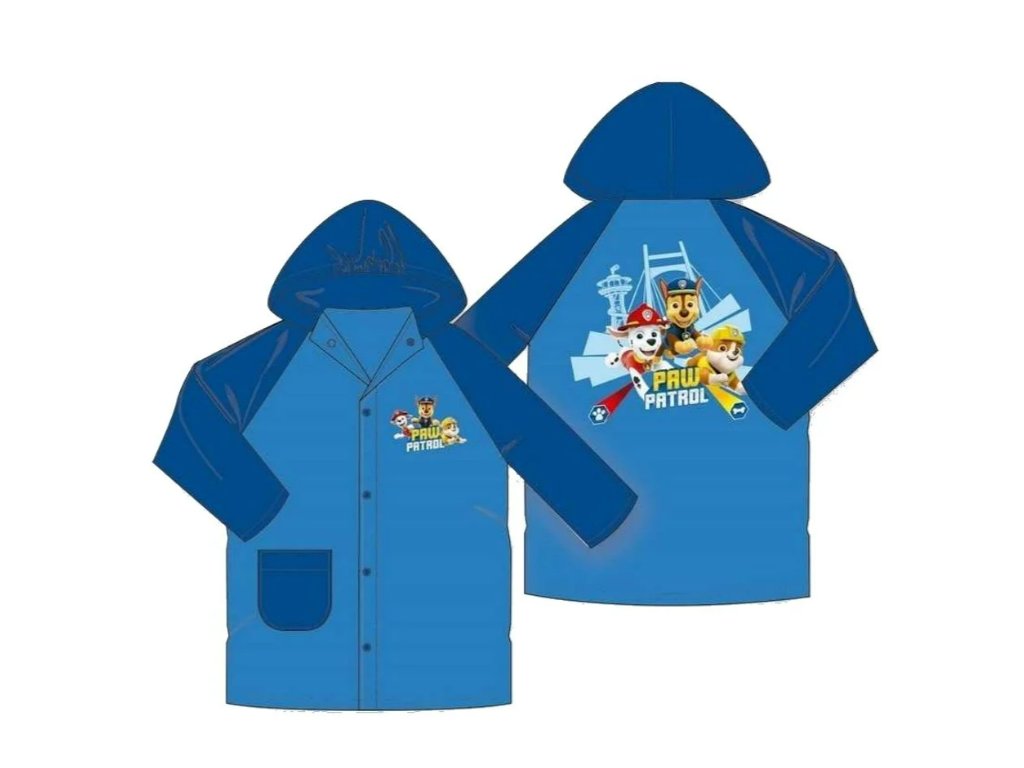 Chlapecká pláštěnka modré barvy Paw Patrol - Tlapková Patrola, obrázek na zádech a vepředu.