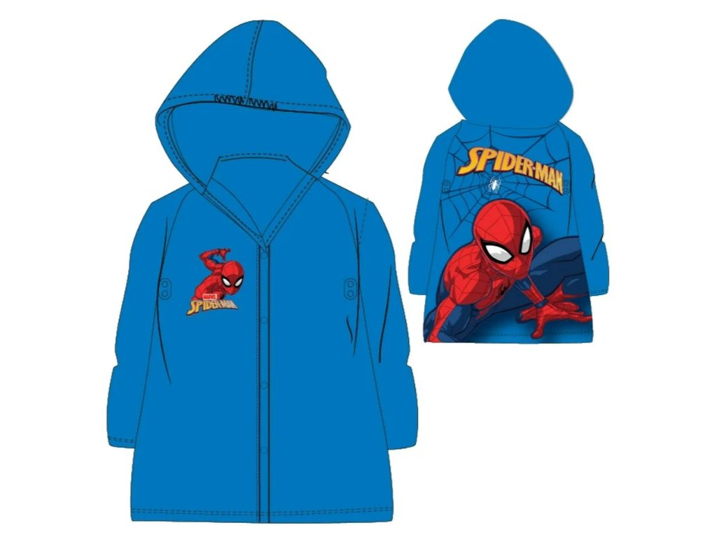 Chlapecká pláštěnka tmavě modré barvy se Spidermanem, obrázek na zádech a vepředu.