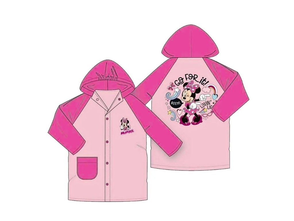 Pláštěnka značky je vyrobena ze 100% PVC, měkká a zapínání je na plastové patentky. Na kapuci je pružná gumička v oblasti čela. Obrázky jsou z obou stran.