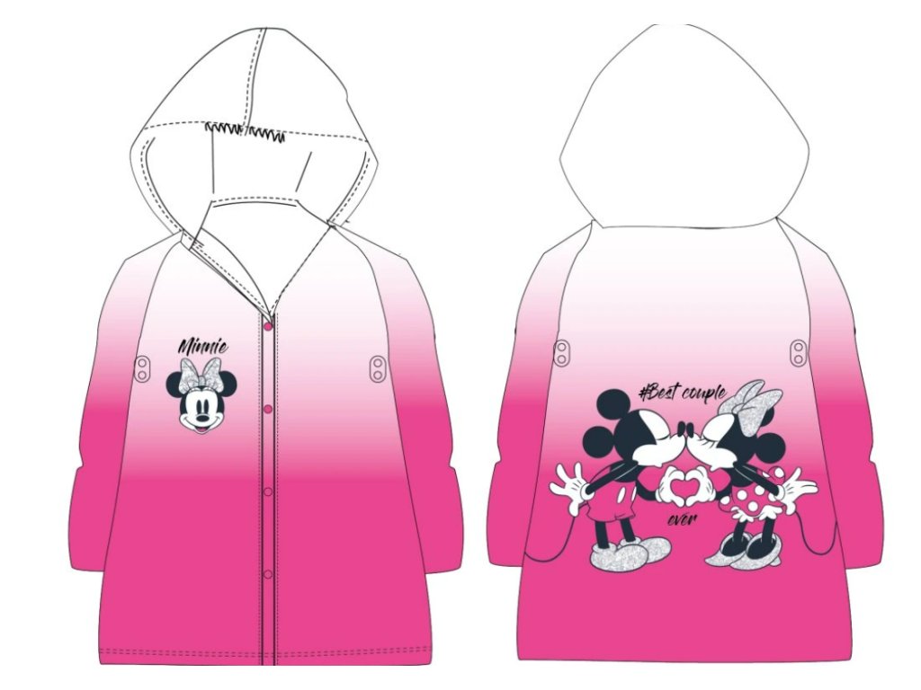 Dívčí pláštěnka růžové barvy Minnie Mouse, obrázek na zádech a vepředu.