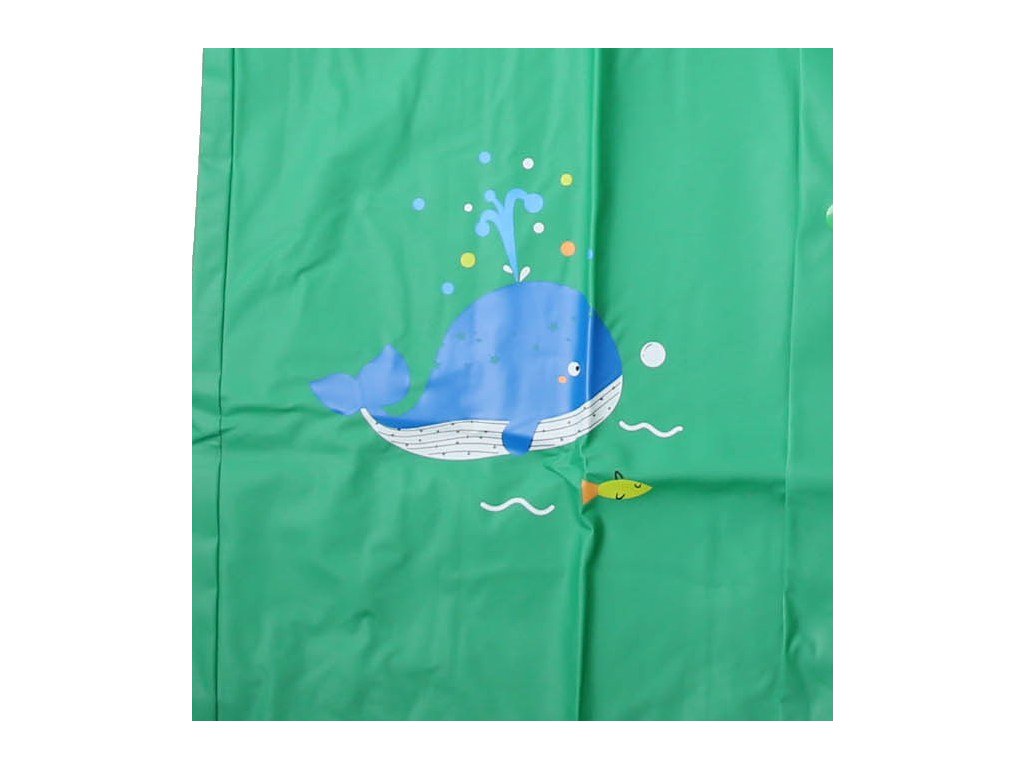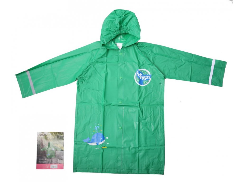 Pláštěnka značky Wolf je vyrobena ze 100% PVC, zapínání je na plastové patentky, v podpaží jsou otvory pro větrání. Na kapuci je pružná gumička v oblasti čela. Na rukávech a zadní straně jsou reflexní proužky, pláštěnka je zabalena v praktické PVC kapsičce na patent.